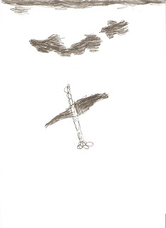 Pero ayer en la noche, cuando llegué a casa, me recibió con una hoja de papel en sus manos que me robó la admiración: Era un dibujo a lápiz de un avión. "Estas son sus ventanas..." me dijo. "Y las nubes son negras por que es de noche..." terminó.