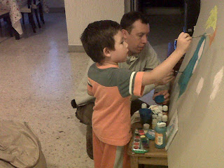 Así que me puse en "ropa de carácter", organizamos los colores, y comenzamos a pintar.